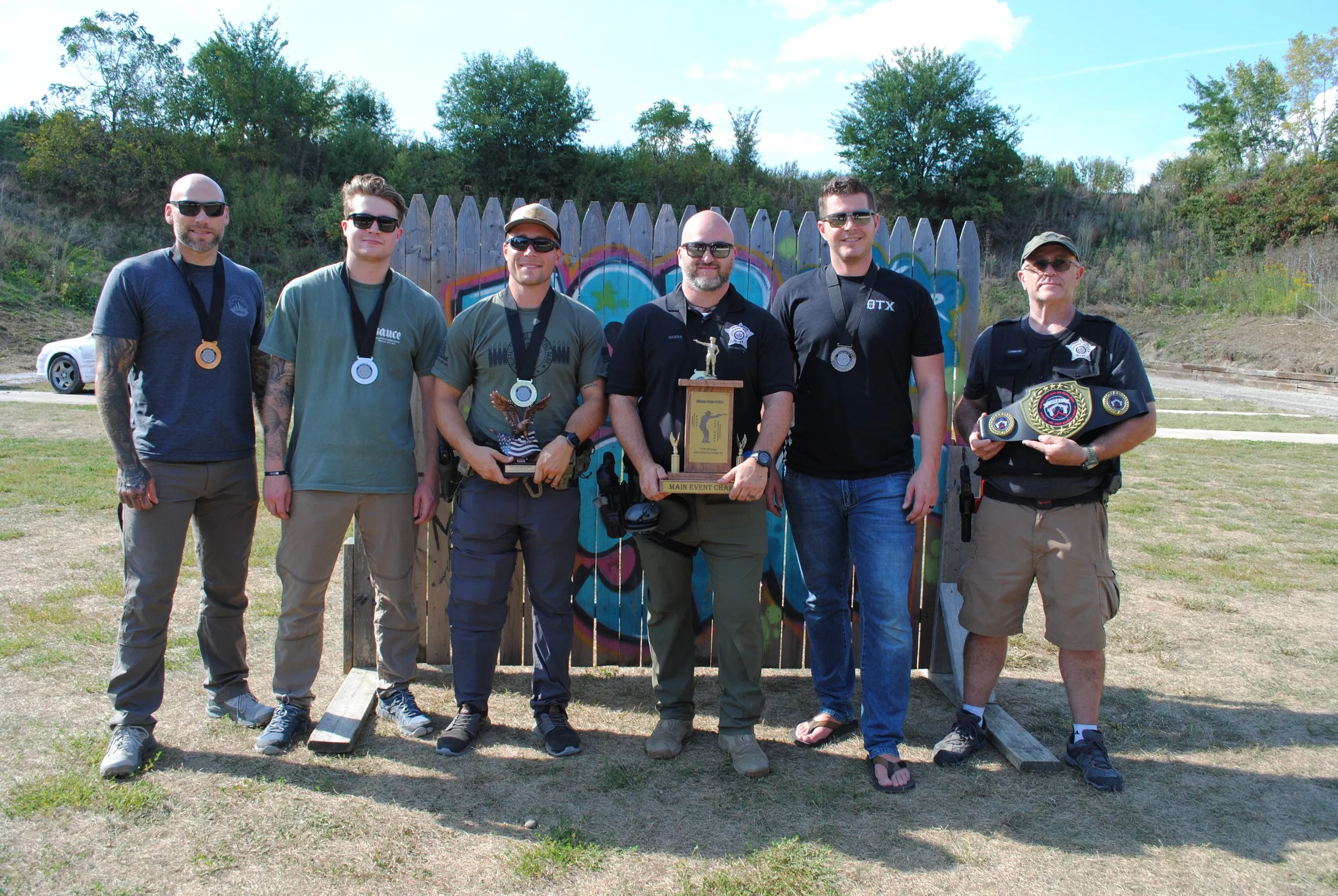 A head to head match on the dueling tree. 3 magazines of 5 with 10 seconds on the timer. If you flip the plates the other way at anytime the duel ends. If time expires, whoever had has the most plates flipped wins. In the event of a tie.. and there were many. We went to the bullseye. A word of advise, you don’t want to be competing against Richard Lombard on a bullseye target…. Lights out!